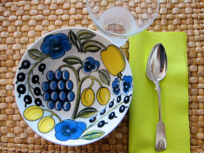 Sarppu, paratiisi on siitäkin kiva, että sitä voi yhdistellä yksivärisiin astioihin, ja jotenkin kummasti mitä ihmeellisimmät väriyhdistelmät näyttävät hyviltä sen kanssa. Paratiisin mukit näyttävät menneet minulta ihan ohi, en muista nähneeni koskaan.