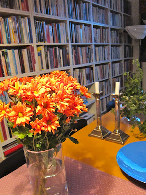 En ota kantaa systeemin visuaaliseen puoleen, mutta ihmettelen miten värin mukaan järjestetyistä kirjahyllyistä pystyy löytämään etsimänsä. Silti jokaikinen kirjahylly, jossa on paljon kirjoja, tekee minut iloiseksi, oli niiden järjestys sitten mikä tahansa.